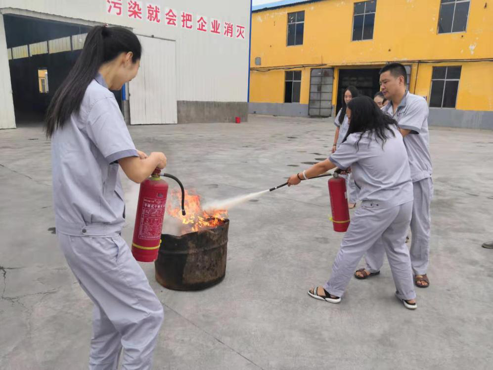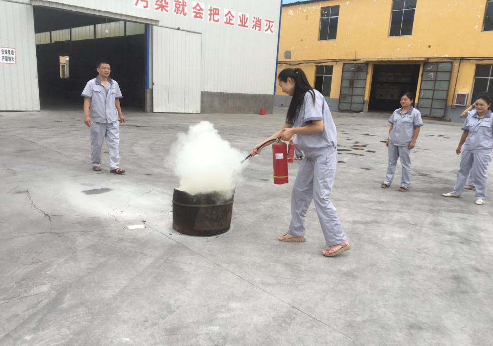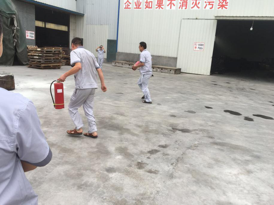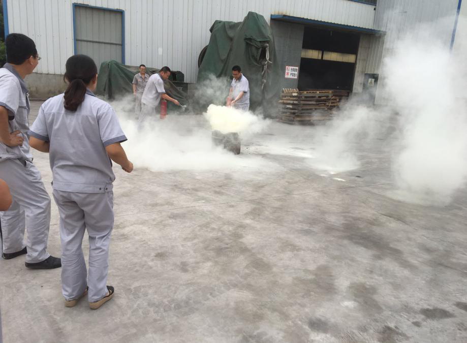7月9號(hào)上午8時(shí)00分,天氣晴好,風(fēng)力不大,根據(jù)事先安排,由安全員大聲喊,成品庫(kù)房外有起火,快速施救,聽(tīng)到喊聲,機(jī)關(guān)人員立即放下手中工作,跑到失火地方,按平時(shí)教育分工,用干粉滅火器滅火,員工按平時(shí)學(xué)習(xí)的使用方法,快速做到滅火,演練比較成功,隊(duì)員僅用5分鐘即趕到現(xiàn)場(chǎng),10分鐘演習(xí)結(jié)束。